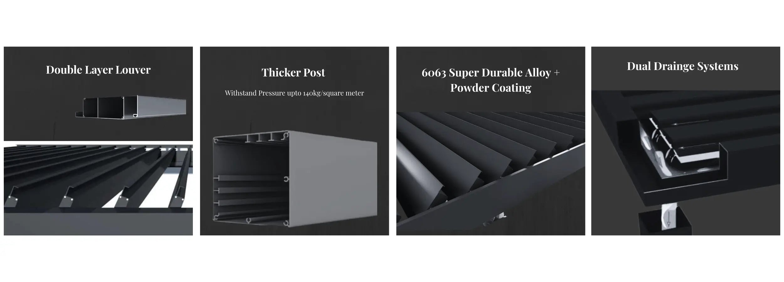 Yes, when the louvers are tightly closed, our louvered roof system is designed to be fully waterproof. Unlike traditional open-roof structures, this aluminum pergola features an integrated gutter system. This clever engineering channels rainwater into the beams and down through the posts, ensuring water exits at the base rather than dripping onto your furniture, keeping your outdoor living space dry even during heavy rain.