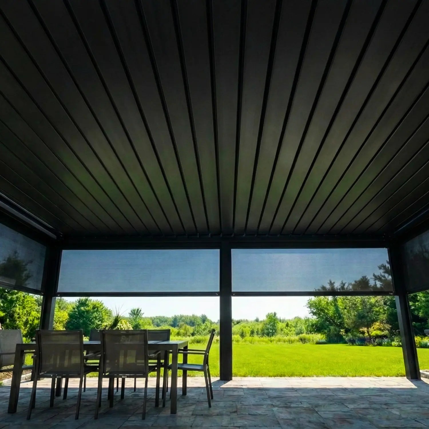 Absolutely. The strong beam structure allows for the addition of privacy screens, mosquito netting, or outdoor roller shades (options are available on our website). Additionally, the central beam is reinforced to support the weight of an outdoor ceiling fan or a heater, making this a fully customizable all-season outdoor room.