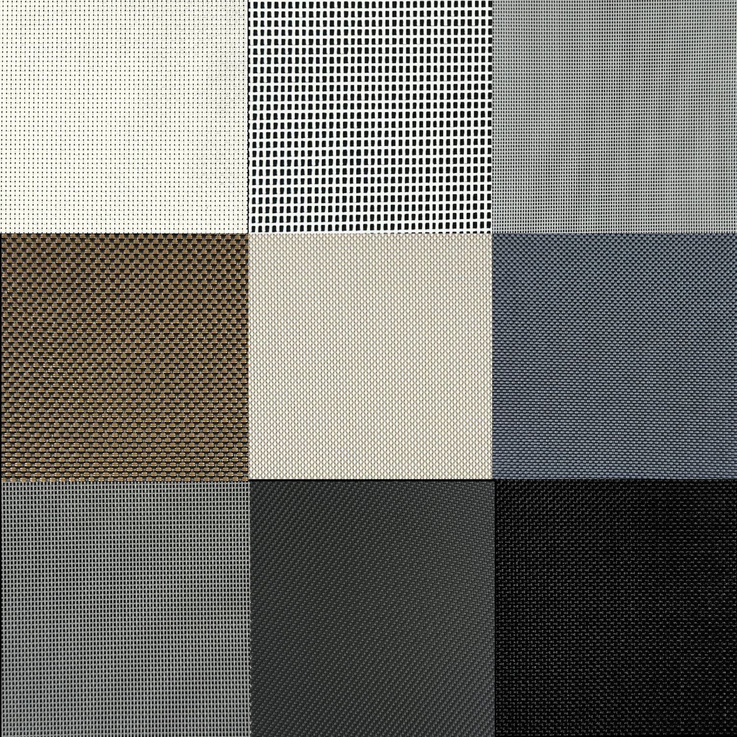 We offer two premium screen-fabric options: PVC-coated polyester and fiberglass. Both are outdoor-ready, durable, and designed for sun control and long-term performance. PVC-coated polyester is a popular choice for strong toughness and everyday outdoor use, while fiberglass is valued for excellent dimensional stability and a smooth, consistent appearance.