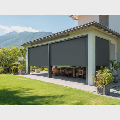 Value Blinds® Motorized Outdoor Windproof Sunshades with Side Rails- Blackout - Max. 9.8'(W)X9.8'(H)