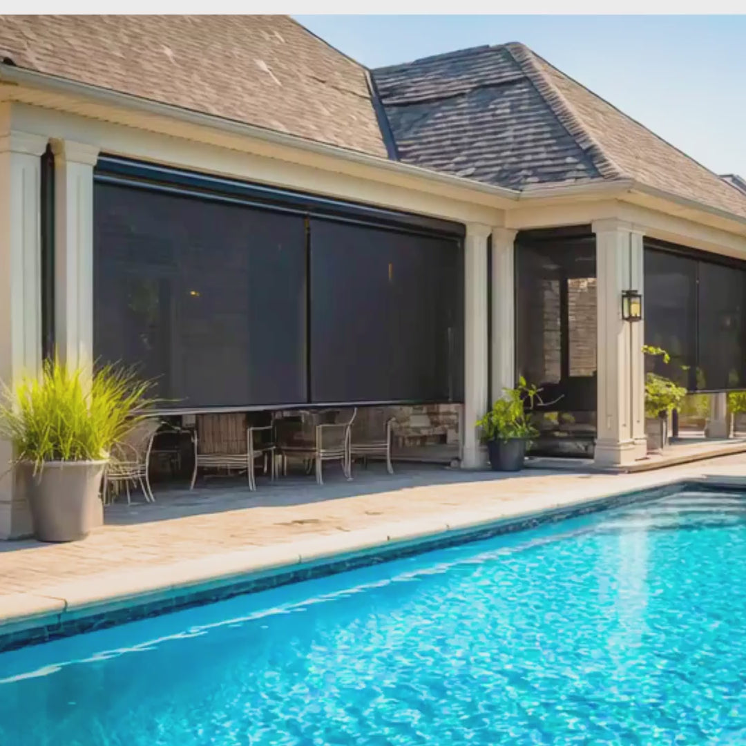 Value Blinds® Motorized Exterior Shades with Side Rails offer precise control over light and privacy, featuring fabric options ranging from 6% to 25% openness as well as blackout options. Designed for durability and smooth motorized operation, these shades with side rails effectively block sunlight and reduce glare while maintaining exterior aesthetics. Ideal for enhancing outdoor comfort, they provide protection from heat and UV rays, helping to lower energy costs and extend outdoor living use throughout the day.